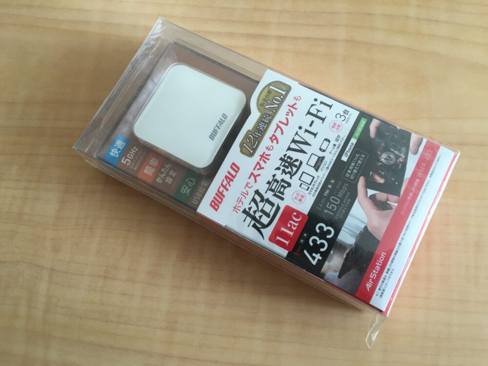 写真のWiFiルーターは「BUFFALO 11ac/n/a/g/b 無線LAN親機(Wi-Fiルーター) ホテル用 WMR-433W-BK」です。安価で軽量(19g、単三電池以下)なので、まったく不満がありません。